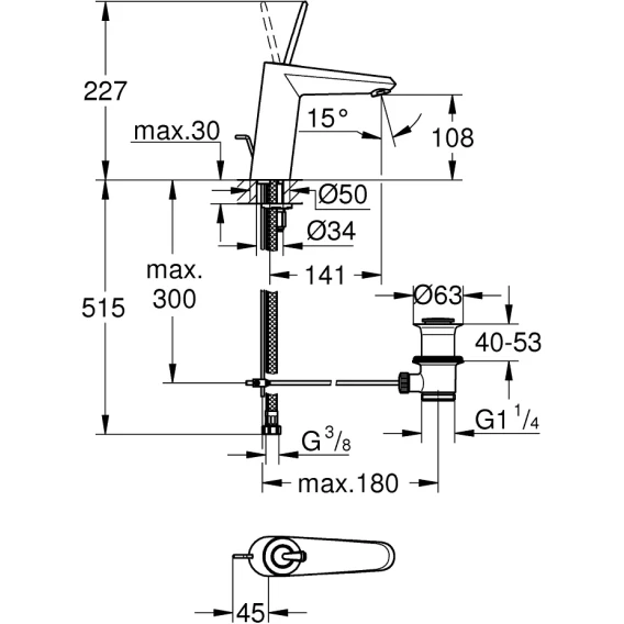 Смеситель для раковины с донным клапаном Grohe Eurodisc Joy 23427000