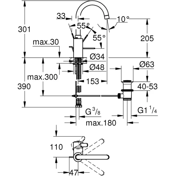 Длина излива 15.3 см