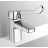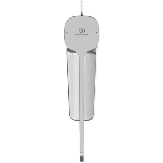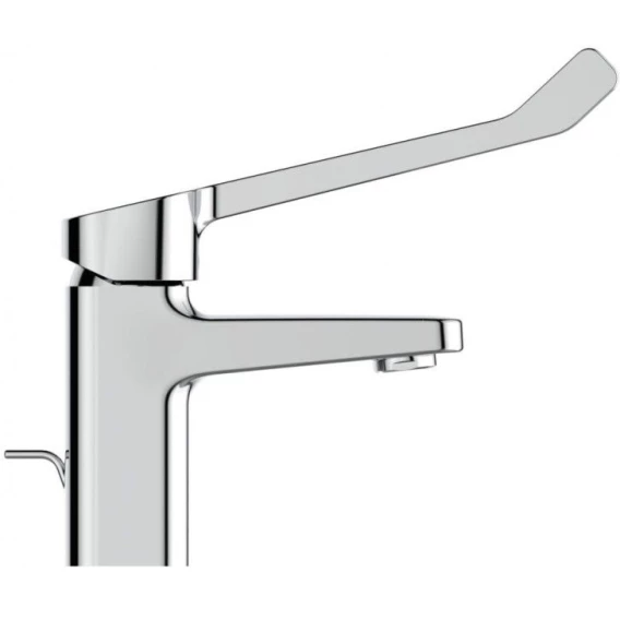 CERAPLAN Смеситель для раковины с удлиненной медицинской рукояткой, с металлическим донным клапаном, система монтажа EASY-FIX (облегченный монтаж), гибкая подводка G3/8", картридж FirmaFlow 38 мм с функцией HWTC (ограничение максимальной температуры горячей воды), металлическая рукоятка с индикаторами горячей / холодной воды, аэратор Slim с ограничением потока 5 л/мин