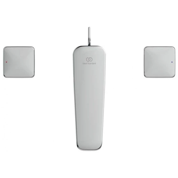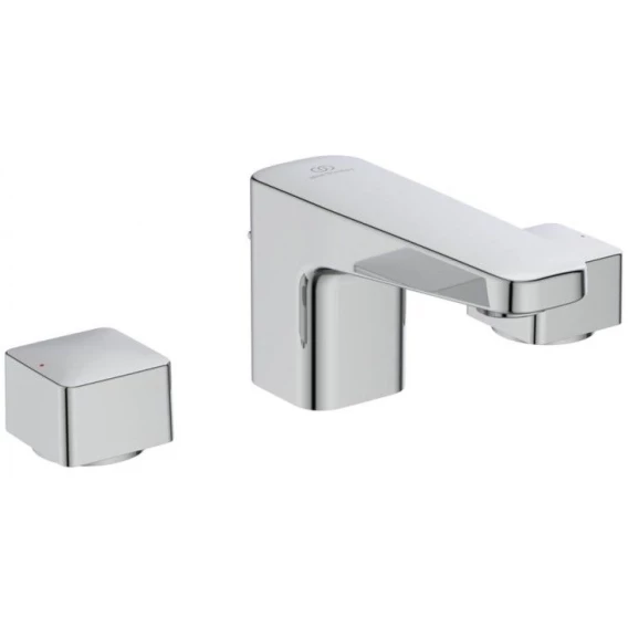 CERAPLAN Смеситель для раковины под 3 отверстия, с металлическим донным клапаном, литой излив, керамические кранбуксы 90°, металлические рукоятки с индикаторами горячей / холодной воды, аэратор с ограничением потока 5 л/мин