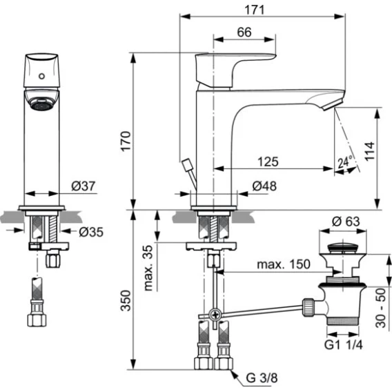 Крепление, Аэратор, Гибкая подводка, Донный клапан