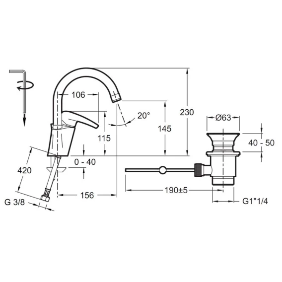 Смеситель для раковины без донного клапана GID Berlin SS080-CH-K