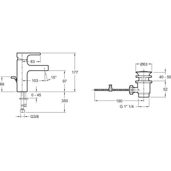 Смеситель для раковины с донным клапаном Jacob Delafon Strayt E37327-CP