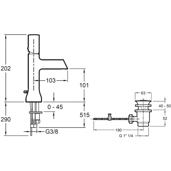Смеситель для раковины с донным клапаном Jacob Delafon Toobi E8959-CP
