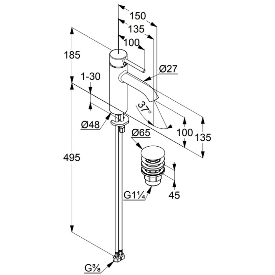 Крепление, Аэратор, Гибкая подводка, Донный клапан