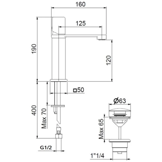 Смеситель для раковины с донным клапаном Webert One-X OX830102741