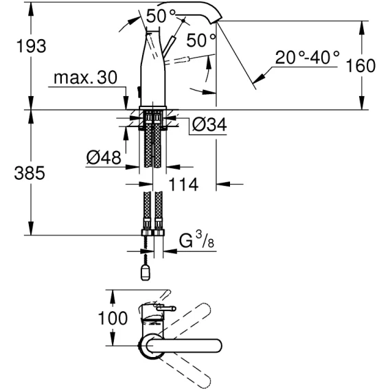 Смеситель для раковины с цепочкой Grohe Essence+ 23480001
