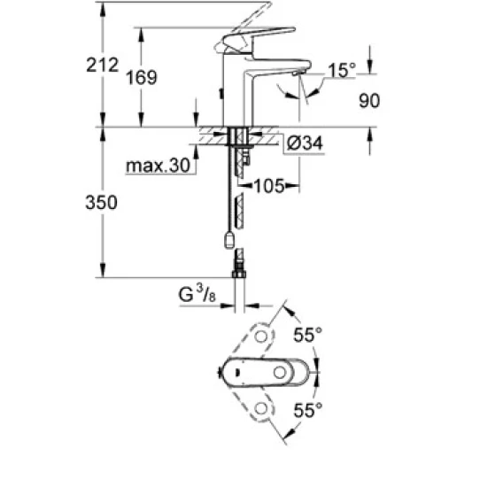 Смеситель для раковины с цепочкой Grohe Europlus II 32617002