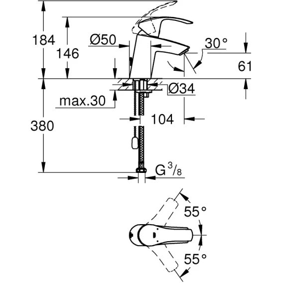 Смеситель для раковины с цепочкой Grohe Eurosmart 33188002