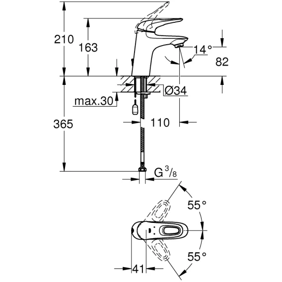 Смеситель для раковины с цепочкой Grohe Eurostyle New 33557003
