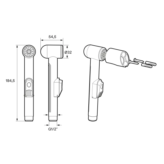 Крепление, Аэратор, Гибкая подводка, Душевой шланг, Душевая лейка, Держатель для душевой лейки