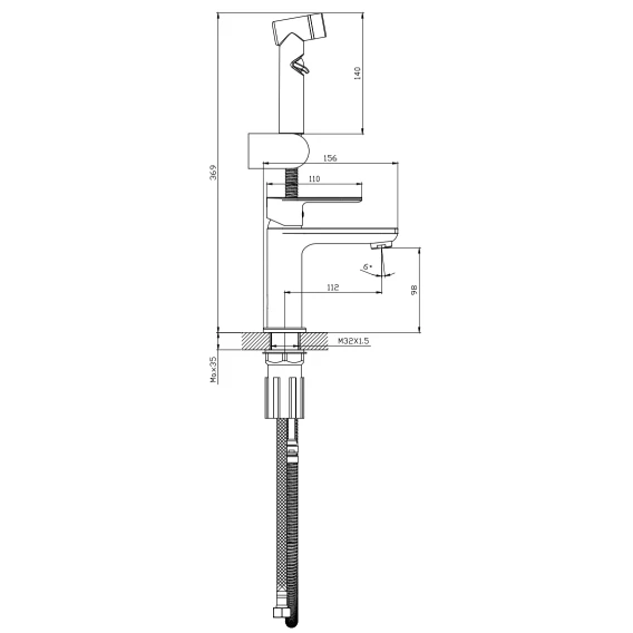 Крепление, Аэратор, Гибкая подводка, Душевой шланг, Душевая лейка, Держатель для душевой лейки