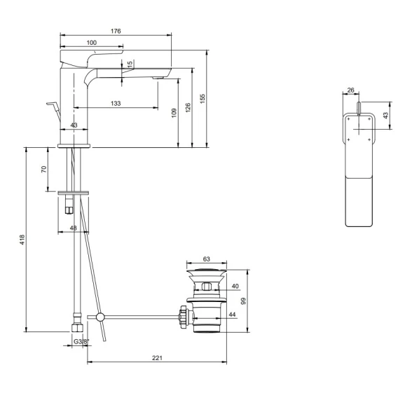 Крепление, Аэратор, Гибкая подводка, Донный клапан