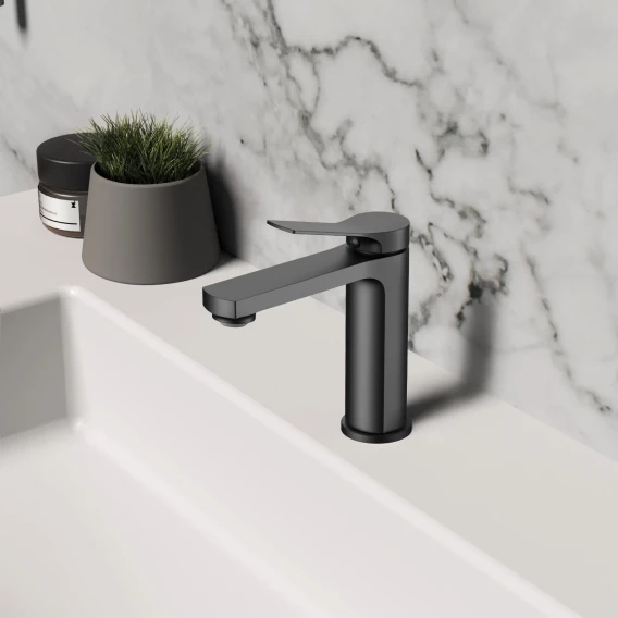 Смеситель для раковины Vincea Arco VBF-4AR01MB без донного клапана, черный матовый