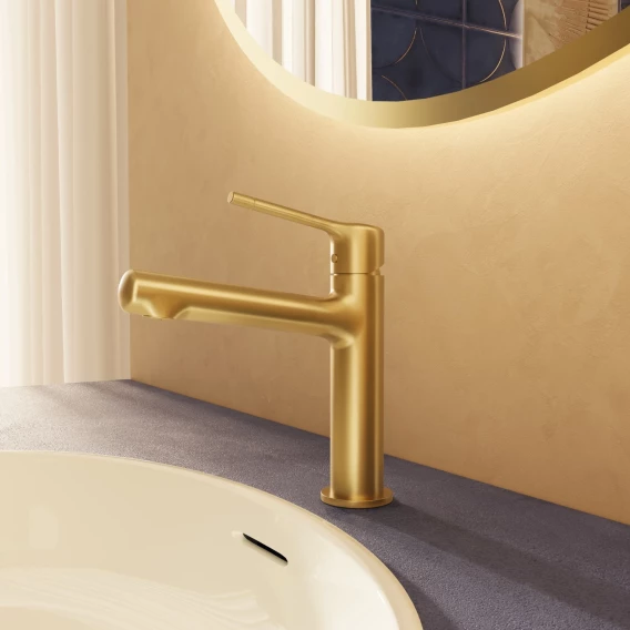 Смеситель для раковины Vincea Feerie VBF-5FE1BG без донного клапана, золотой матовый