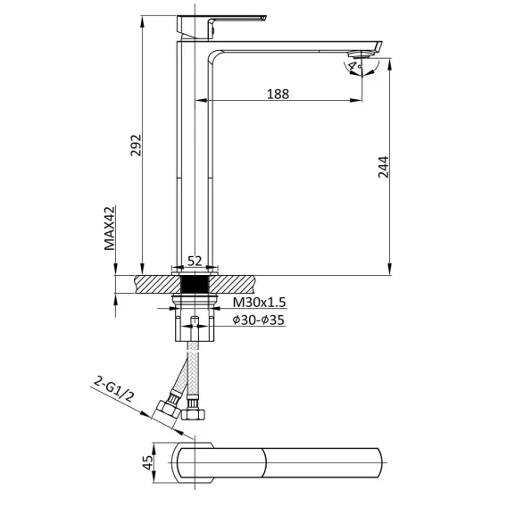 Высота излива 24.4 см