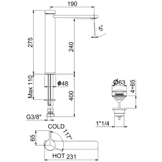 Крепление, Аэратор, Гибкая подводка, Донный клапан, CoolStart