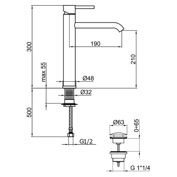 Высота излива 21 см