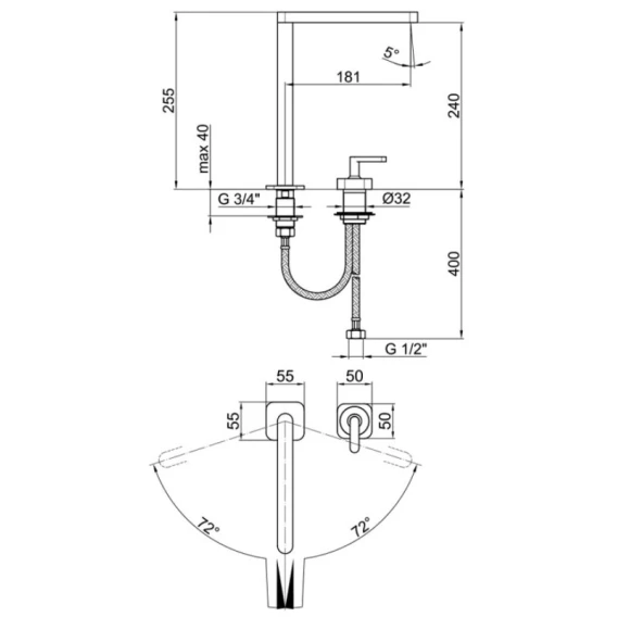 Смеситель для раковины без донного клапана Tiemme Fly F01SS 411490502