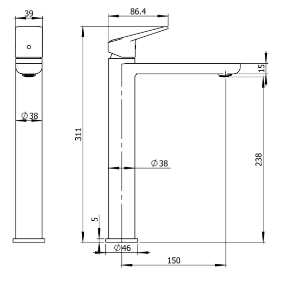 Длина излива 15 см