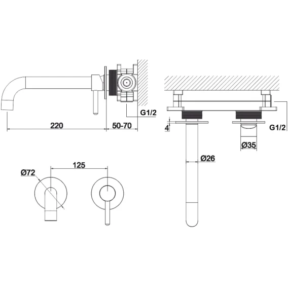 Ванна чугунная Vinsent Veron Italon VIT1707045H/VH0012GD 170x70 см, с ручками, белый