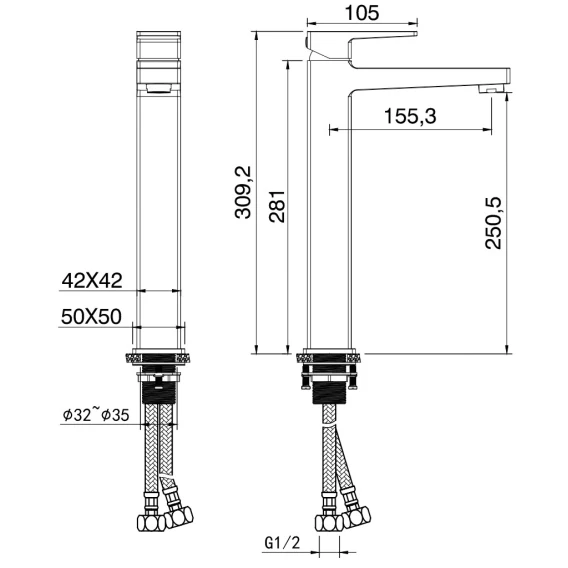 Высота излива 25.05 см