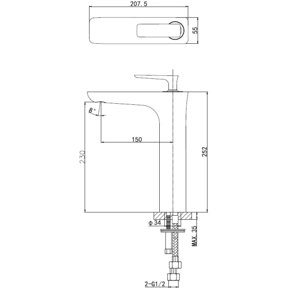 Смеситель для раковины Wonzon & Woghand Shark WW-481102-CR хром