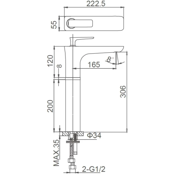 Смеситель для раковины Wonzon & Woghand Shark WW-48B1104-CR хром