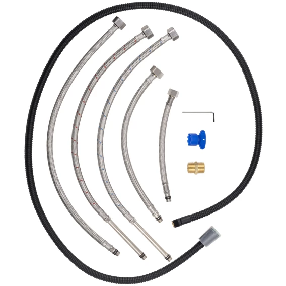 Крепление, Аэратор, Гибкая подводка, Душевой шланг, Душевая лейка