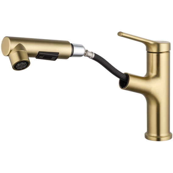 Смеситель для раковины Wonzon & Woghand WW-A40862-BG с выдвижным изливом, золотой матовый