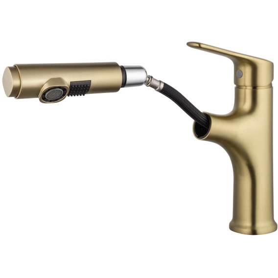 Смеситель для раковины Wonzon & Woghand WW-AE4151-BG с выдвижным изливом, золотой матовый