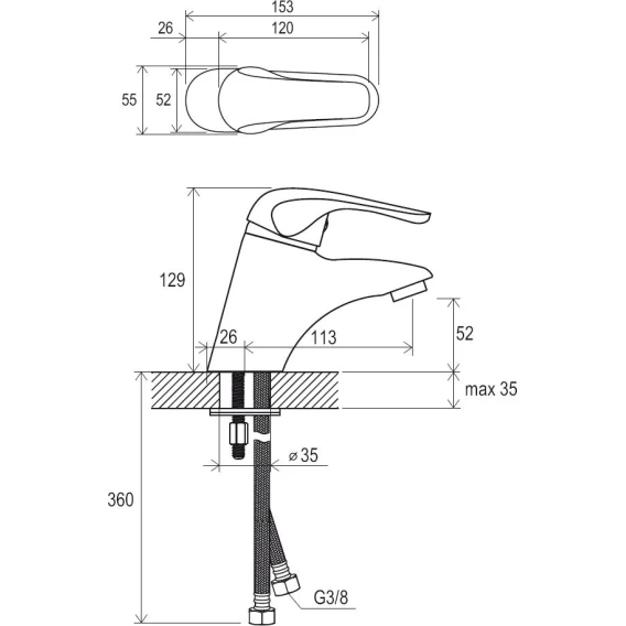 • соединительные шланги: гибкий 350 мм, диаметр G3/8