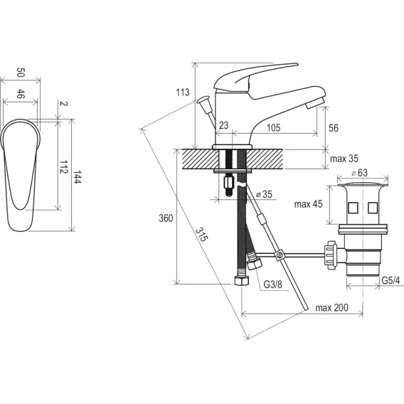 • соединительные шланги: гибкий 350 мм, диаметр G3/8