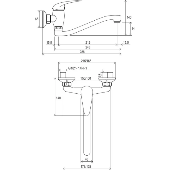 • межосевой размер смесителя : 100 мм - подходит для реконструируемых квартир