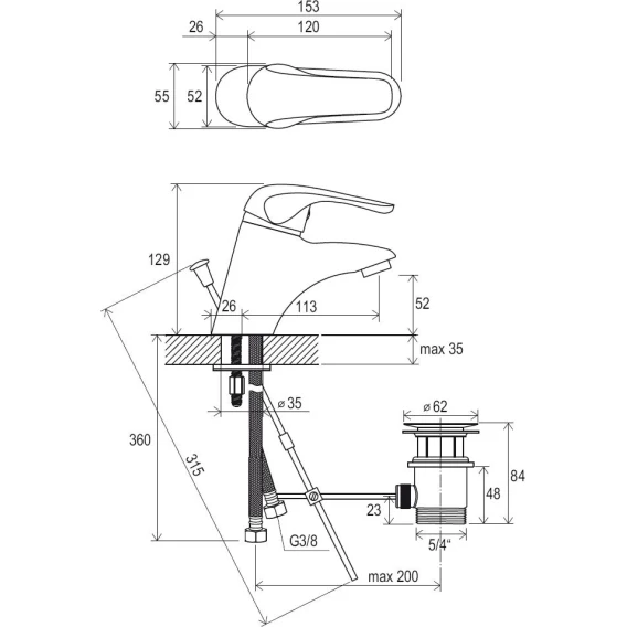 • соединительные шланги: гибкий 350 мм, диаметр G3/8