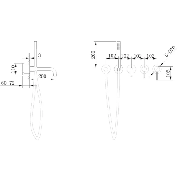 Аэратор, Душевой шланг, Душевая лейка, Подключение для душевого шланга с держателем, Излив, Скрытая монтажная часть