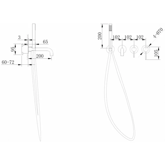 Аэратор, Душевой шланг, Душевая лейка, Подключение для душевого шланга с держателем, Излив, Скрытая монтажная часть