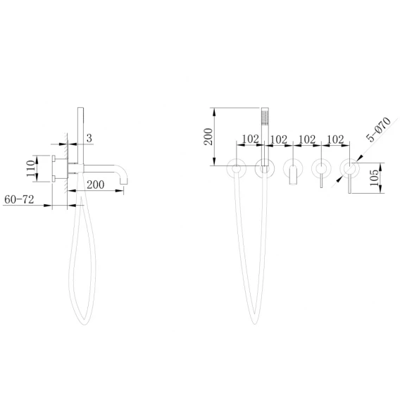 Аэратор, Душевой шланг, Душевая лейка, Держатель для душевой лейки, Подключение для душевого шланга, Излив, Скрытая монтажная часть