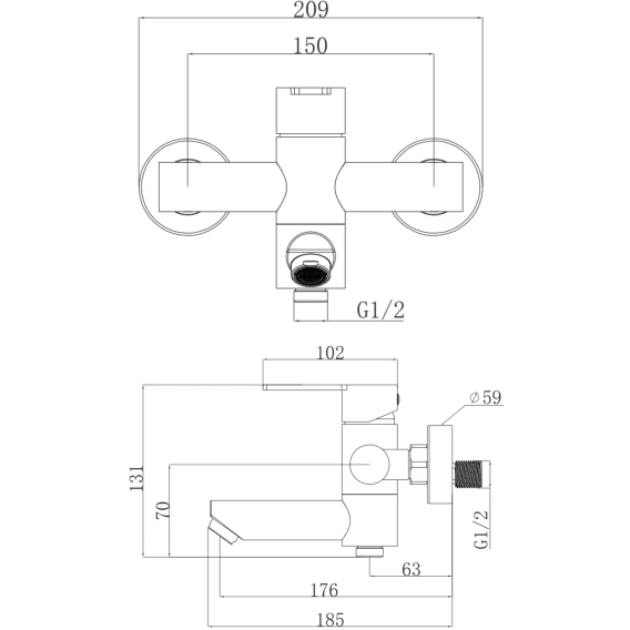 Смеситель для ванны Agger Easy A3121255 с душевым гарнитуром, оружейная сталь матовый