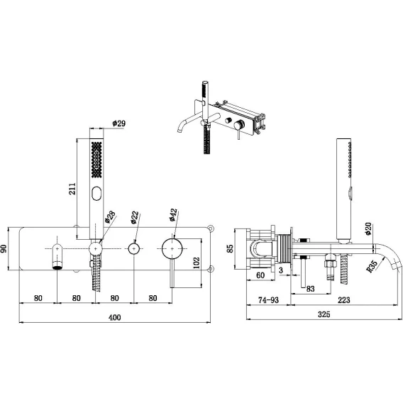Аэратор, Душевой шланг, Душевая лейка, Подключение для душевого шланга с держателем, Излив, Скрытая монтажная часть