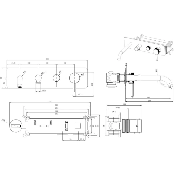 Аэратор, Душевой шланг, Душевая лейка, Подключение для душевого шланга с держателем, Излив, Скрытая монтажная часть