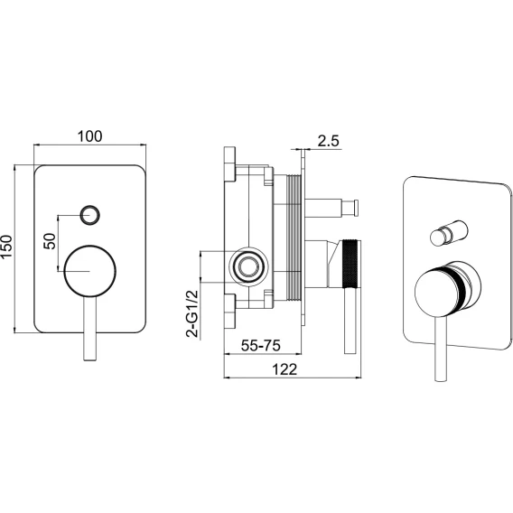 Смеситель для ванны Allen Brau Priority X2 5.31011-31 встраиваемый, черный матовый