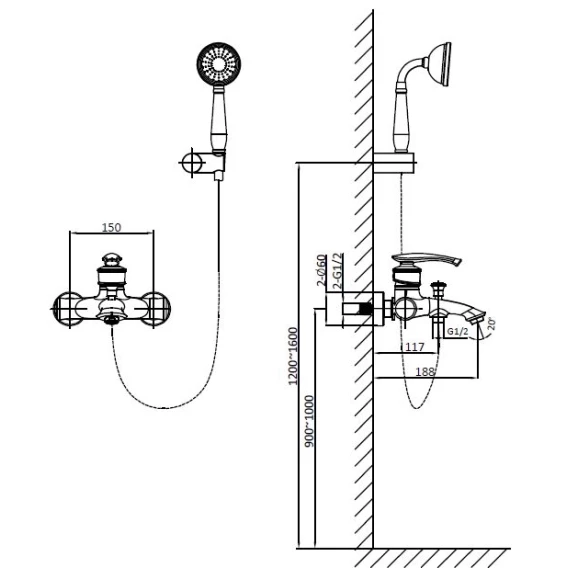 Аэратор, Металлическая розетка, Эксцентрики, Душевой шланг, Душевая лейка, Держатель для душевой лейки