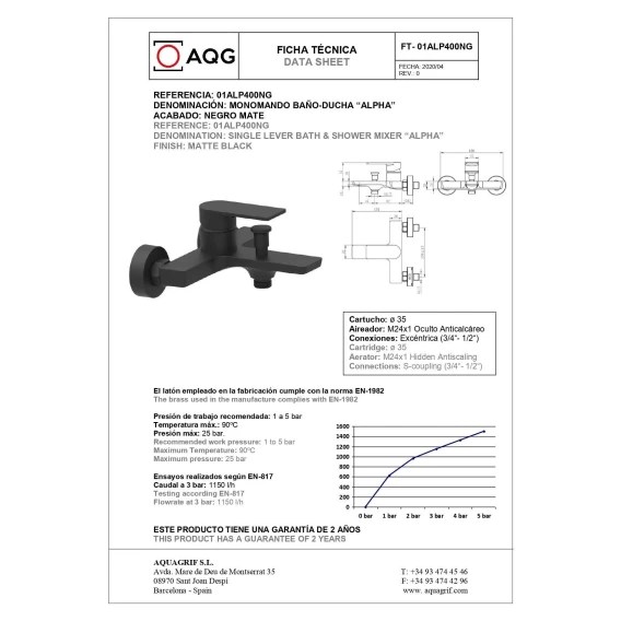 Смеситель для ванны AQG Alpha 01ALP400NG черный матовый
