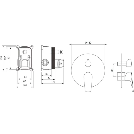 Смеситель для ванны Aquatek Бетта AQ1146BGM встраиваемый, оружейная сталь матовый