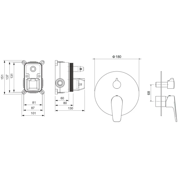 Смеситель для ванны Aquatek Бетта AQ1146CR встраиваемый, хром