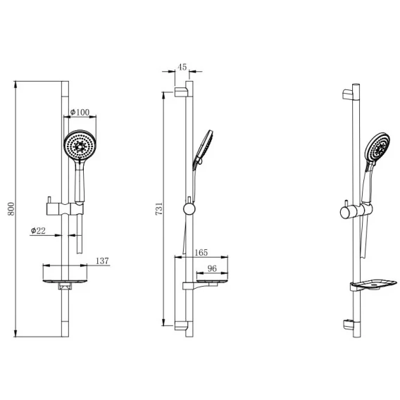 Крепление, Аэратор, Металлическая розетка, Эксцентрики, Душевой шланг, Душевая лейка, Держатель для душевой лейки, Мыльница, Штанга душевая