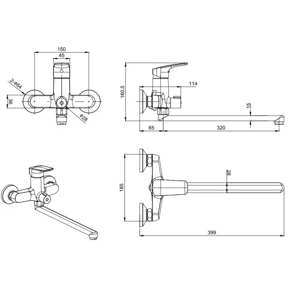 Длина излива 32 см