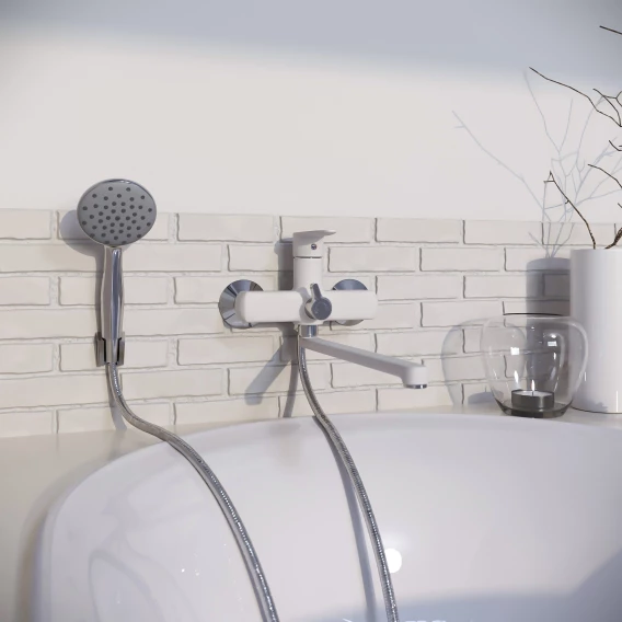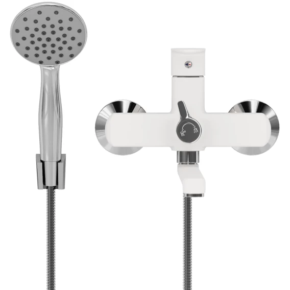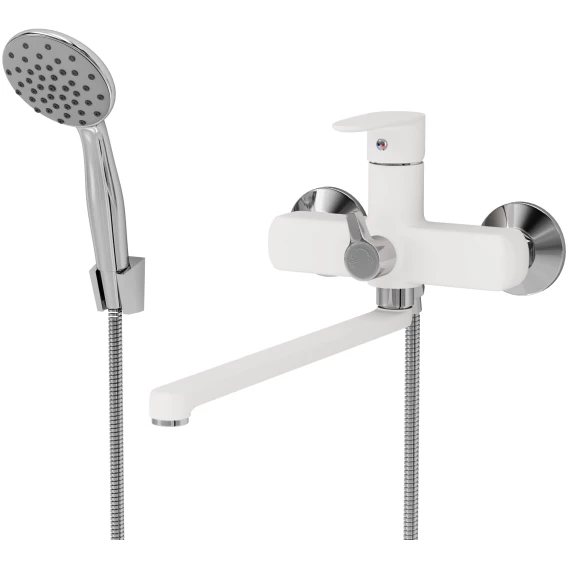 Смеситель для ванны Aringa Рейн AR02002WH универсальный, с душевым гарнитуром, хром/белый матовый