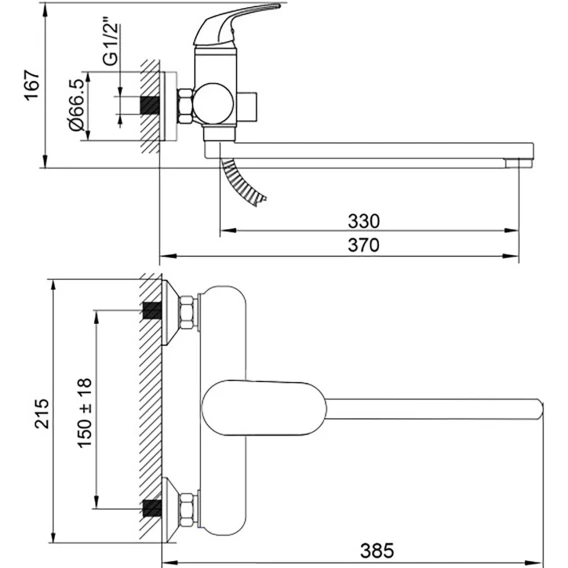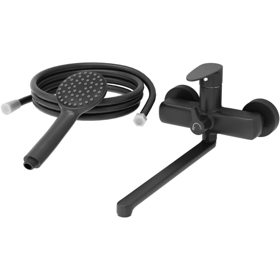 Смеситель для ванны Aringa Рейн AR02003BL универсальный, с душевым гарнитуром, черный матовый